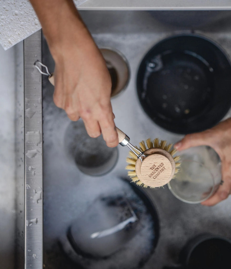 Enfin une brosse à vaisselle en bois pour remplacer celle en plastique! Faite à partir de fibre naturelle de tampico, les poils de sa tête remplaçable sont doux et nettoient efficacement, sans égratigner la vaisselle.